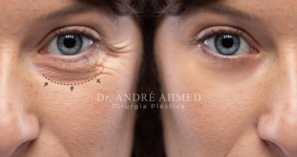 Basicamente, essa cirurgia é realizada com uma incisão na conjuntiva da pálpebra inferior (parte interna da pálpebra) para retirar o excesso de gordura da região.